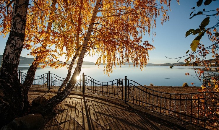 В паре минут ходьбы от корпусов на берегу озера находится собственный пляж отеля, где можно устроить пикник и принять солнечные ванны в теплое время года. На мелко-галечном побережье установлены навесы, есть лежаки и шезлонги.