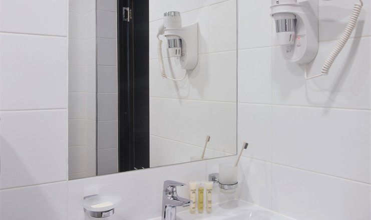 В номере: кровати односпальные /одна двуспальная кровать, прикроватные тумбочки, стол, столик журнальный, стулья, тумба багажная, шкаф, кондиционер, сейф, телевизор ЖК, телефон, холодильник, чайная станция и бутилированная вода, чайный набор посуды, электрочайник