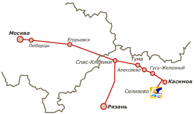 Телефон: 8 (4912) 77-31-00 На автобусе из Рязани: от Центрального автовокзала («Торговый городок») г.Рязань автобусом до г.Касимов. На автобусе из Москвы: с автовокзала "Щелково" автобусом до г. Касимов. Из Касимова рейсовым автобусом № 115 "Черемушки-Приокский-Селизово"до санатория "Приока" (время в пути 30-40 мин.) по расписанию 6.45; 8.25; 11.10; 13.10; 16.30. Автомобильным транспортом: из г.Москва - по Егорьевскому шоссе (300 км).